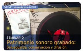 El Instituto del Patrimonio Cultural de España (IPCE) acogerá del 9 al 11 de septiembre de 2019 un seminario coordinado por Miguel Ángel Sánchez Domínguez sobre patrimonio sonoro.